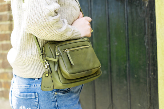 Olijfgroene Leren Schoudertas Dames – Ella | Just Lioné