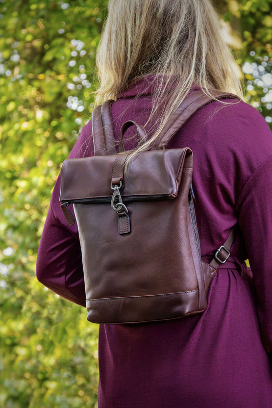 Donkerbruine Leren Rugzak met Tabletvak – Renee | Just Lioné