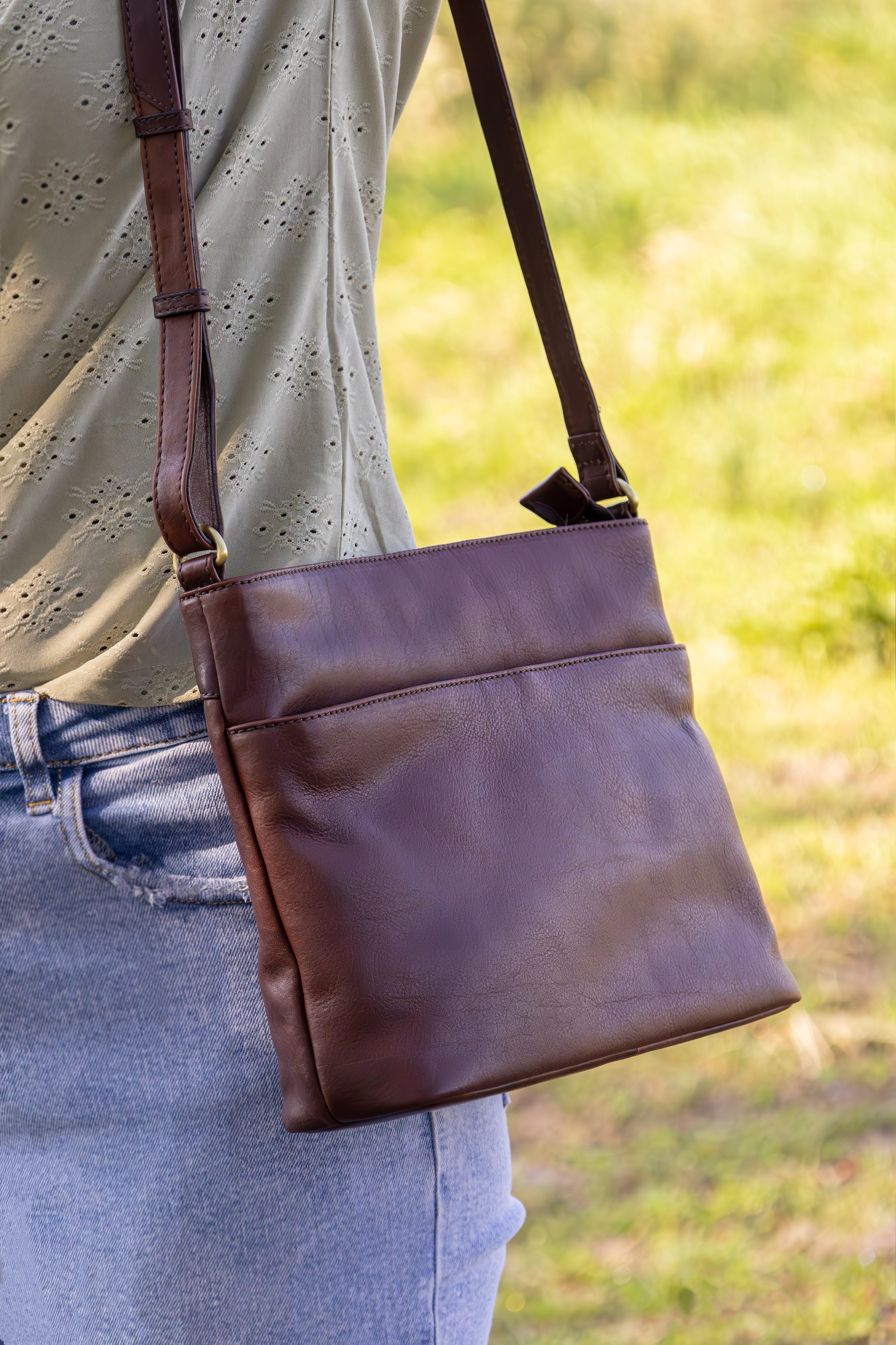 Donkerbruine Leren Schoudertas Dames – Ella | Just Lioné