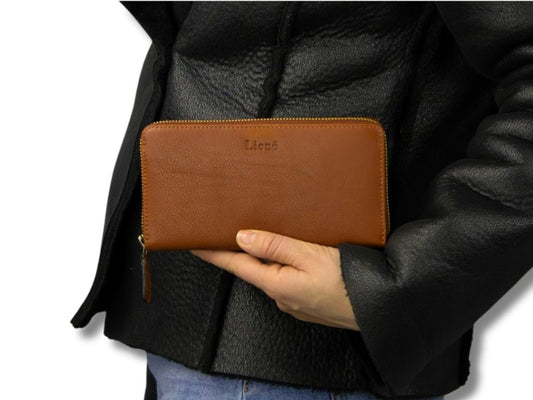 Cognac Leren Damesportemonnee met RFID – Marian | Just Lioné