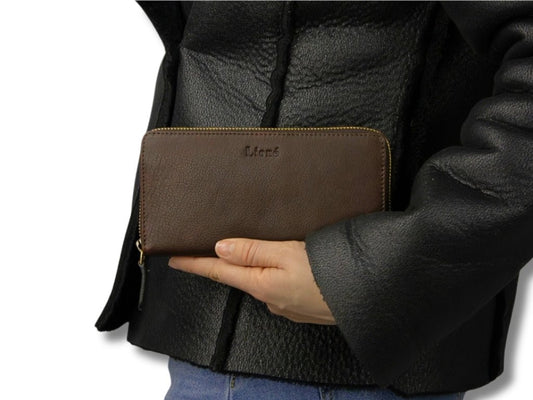 Donkerbruine Leren Damesportemonnee met RFID – Marian | Just Lioné