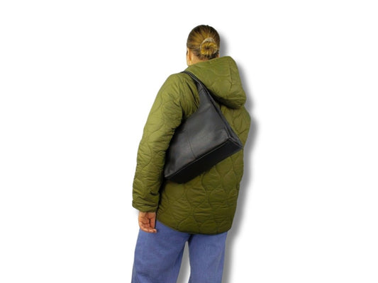 Zwarte Leren Schoudertas Dames – Manon | Just Lioné